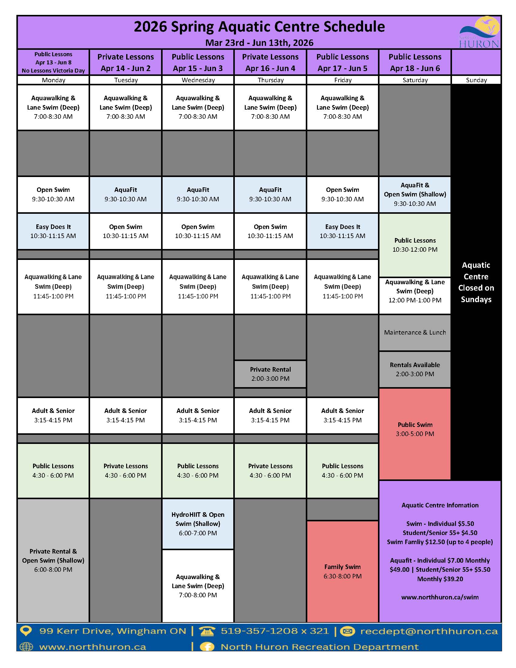11:45 am -1:00 pm Lane Swim (Deep Side) and Aquawalking/Leisure Swim (Shallow side)